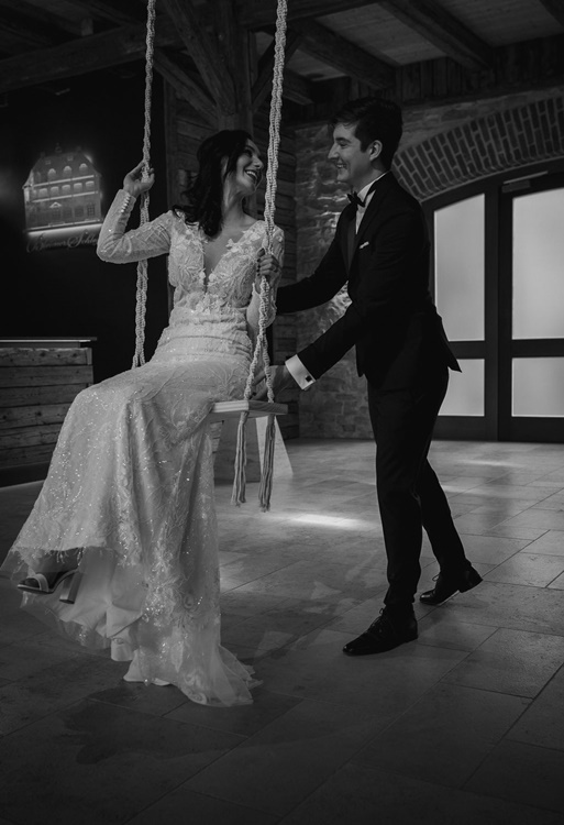 Die freie Rednerin, Eva Dremel traute das Paar mit sehr persönlichen und herzerwärmenden Worten. Für das leibliche Wohl sorgte zum einen mit ihrem Sweetable und der atemberaubenden Torte, Anja Gegenfurter von Naschwerkmelcherhof sowie der Privatkoch Peter Hundsdorfer mit einem exquisiten Fingerfoodbuffet. Einfach nur lecker! Was könnte dazu nicht besser passen als ein Sekt der Spitzenklasse vom Bleimer Schloss. Definitiv ein Hingucker war die extra installierte Vintage-Schaukel. Am Hochzeitstag selbst, unterstreicht dieses dynamische Element nochmal die Braut mit ihrem Traumkleid.