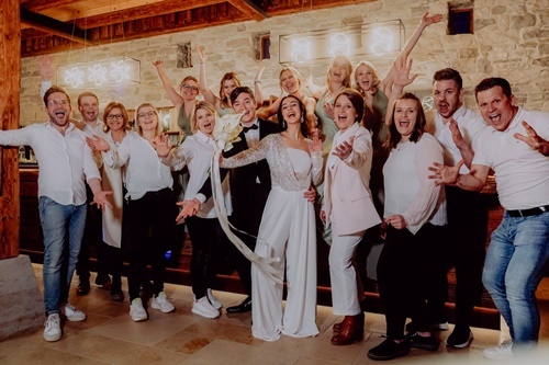 Schnell in das Partyoutfit geschlüpft und das Make-up überprüft – schon sorgte Hochzeit-DJ JulesTonic nochmal ordentlich für Stimmung und heizte den Gästen mit den neuesten Beats und Vibes richtig ein.